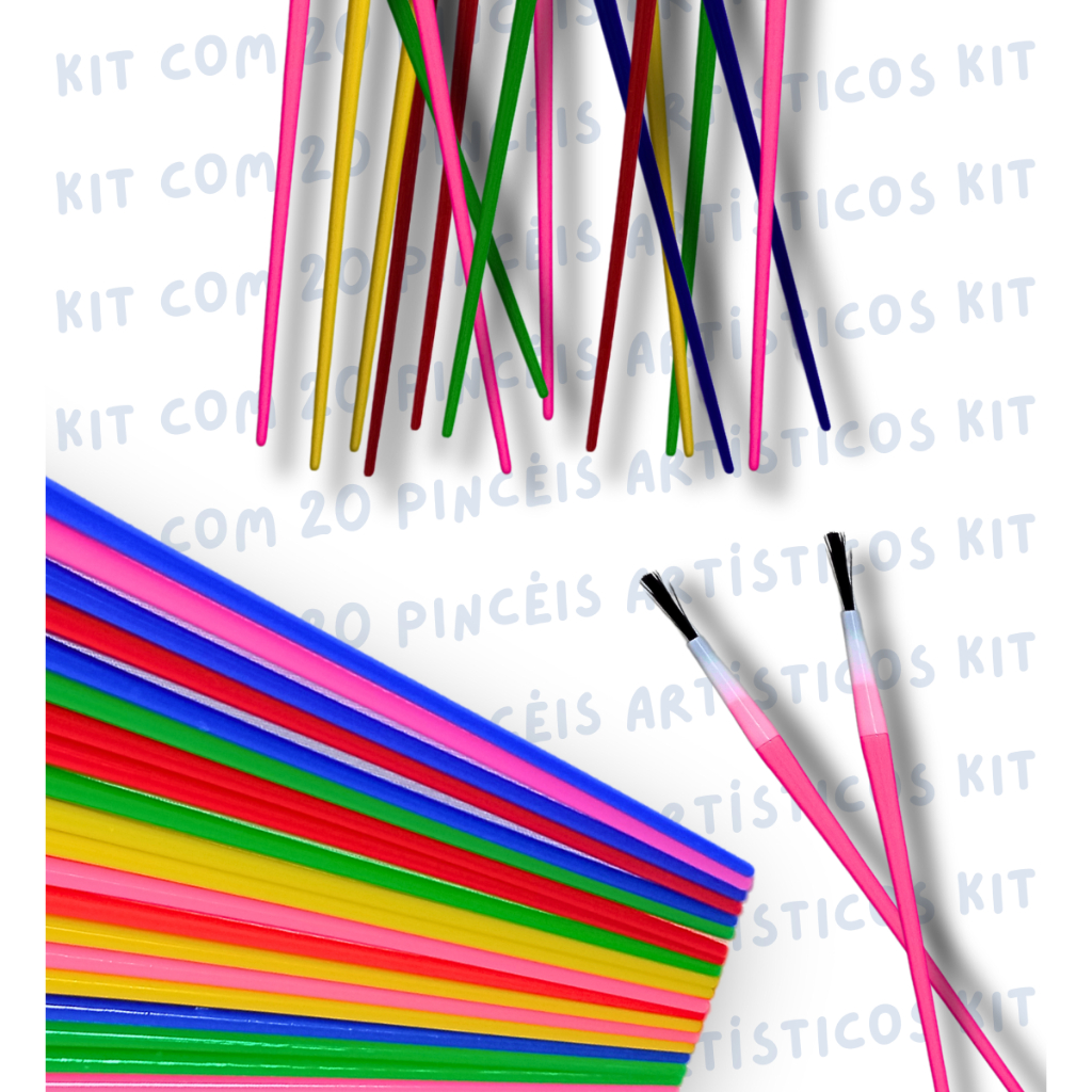 Kit 40 Pincel Artístico Artesanato Pintura Colorido Desenho para Tinta Guache Escolar Infantil