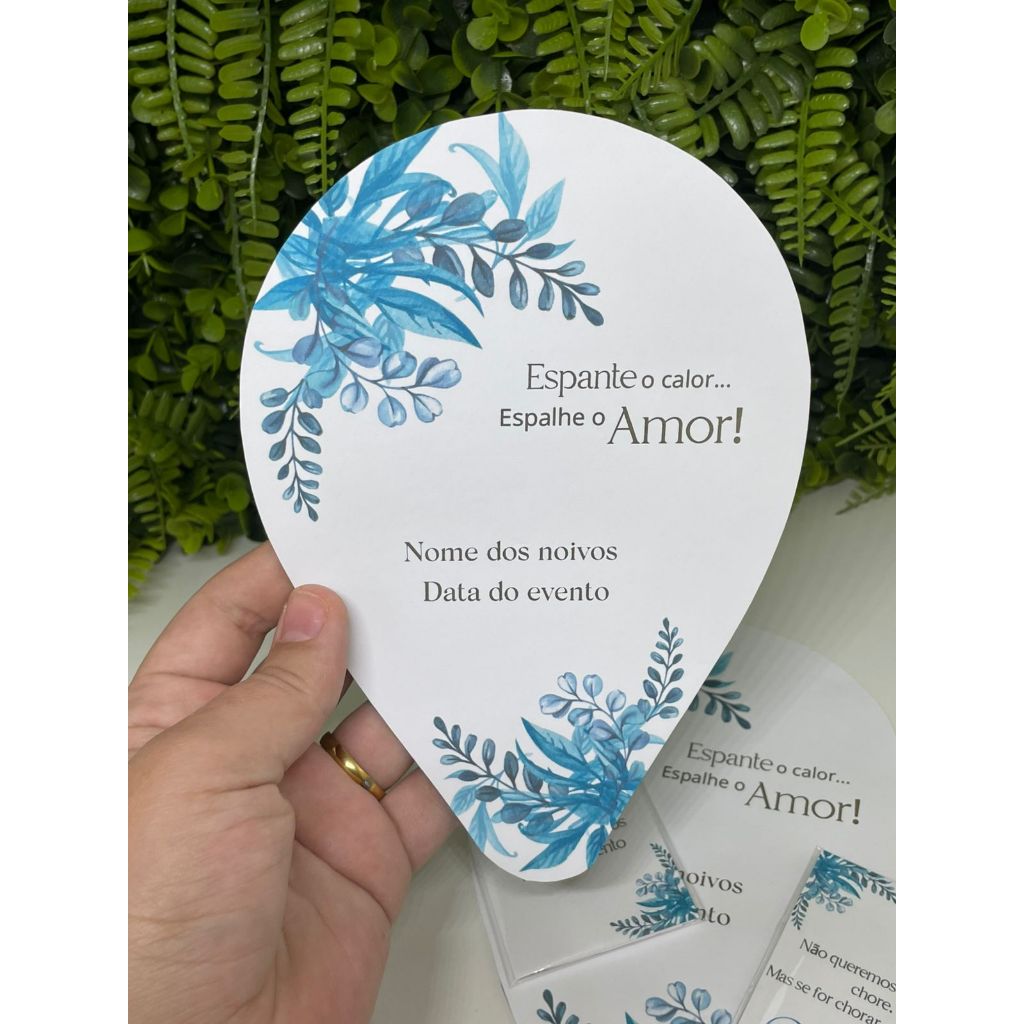 Ventarola personalizada é a escolha perfeita para tornar o seu evento ainda mais inesquecível. Com design elegante e delicado, ele traz o toque especial de flores aquareladas em azul, com a mensagem "Espalhe o calor... Espalhe o Amor!" e um recado inspirador. Perfeito para casamentos, ele pode ser personalizado com os nomes dos noivos e a data do evento. Ideal para garantir conforto aos seus convidados e um toque de sofisticação ao grande dia. O kit acompanha: 40 Ventarola Personalizável com o Nome e com a Data do Evento. Consulta cor disponível caso não tenha na opção de escolha Tamanhos: Ventarola: 20x14 cm (aproximadamente). Folha Fotográfica de alta qualidade 180g/m². Após a compra mandar nome e data para a personalização.
