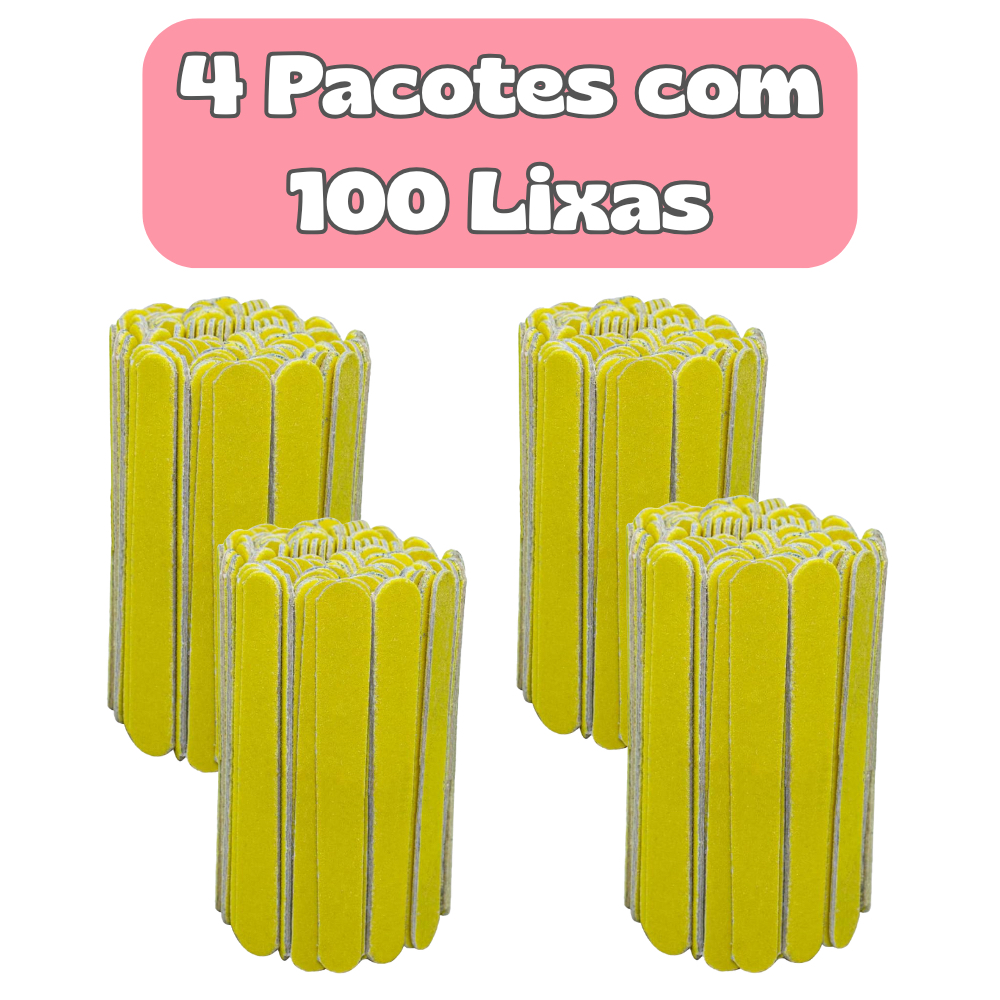 Kit 400 Mini Lixas CANÁRIO 8cm – Manicure Pedicure Profissional Descartável Atacado Unha