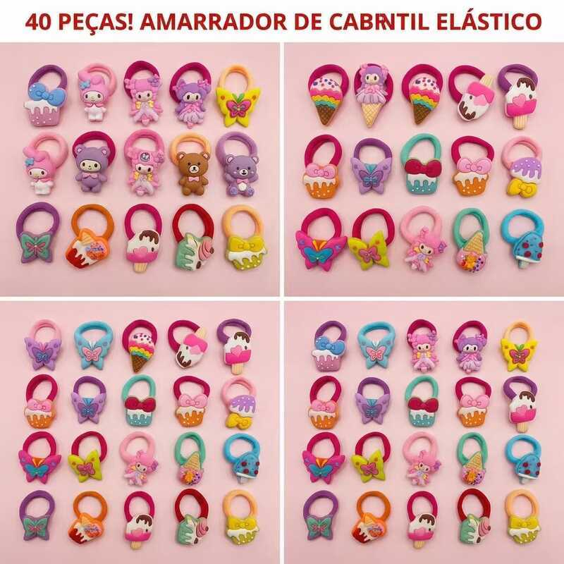 Kit 40unidades Lacos de Bico de pato/Tic tac+ Rabico Com Desenho de Silicone Infantil Acessórios Para Cabelo