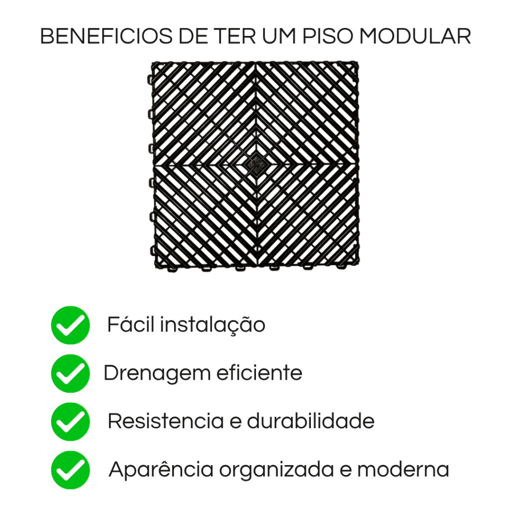 | Kit 44 Piso Modular Plástico Fácil Instalação Antiderrapante 30x30 ... este produto | R$ 294,44 | 13% | — | 5 |