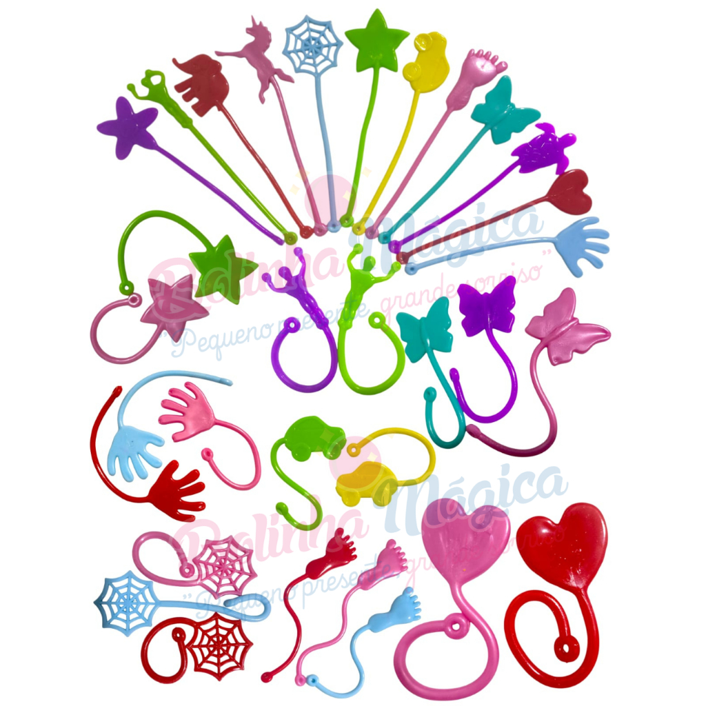 Kit 45 Geleca Gruda Parede Puxa Estica Para Lembrancinha Festa Colorida Aniversario Prenda Quermesse