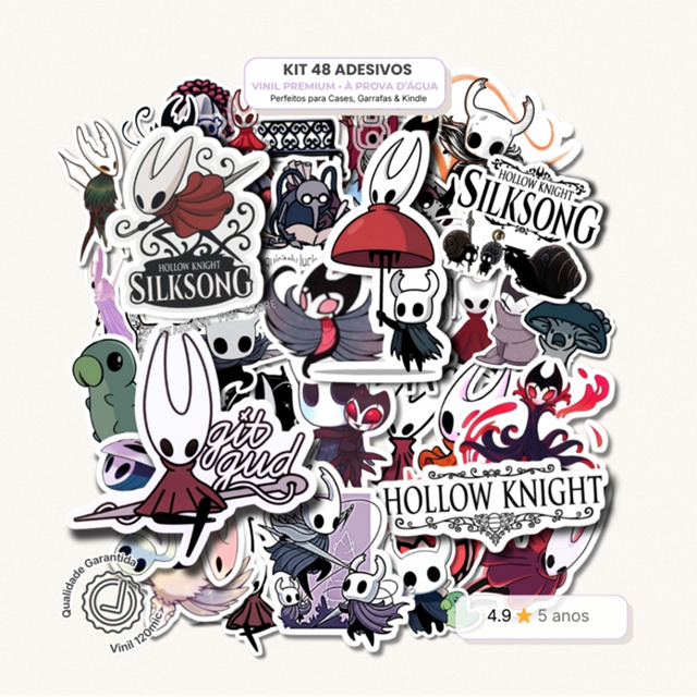 | Kit 48 Adesivos Hollow Knight: Silksong - Vinil à Prova D’Água | St... este produto | R$ 24,99 | 49% | 4.9/5 | 9 |