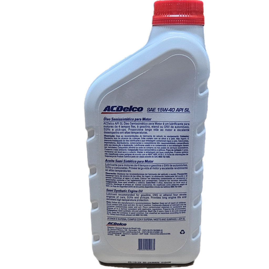 Kit 4L de Óleo 15w40 Semissintético ACDelco 98550553