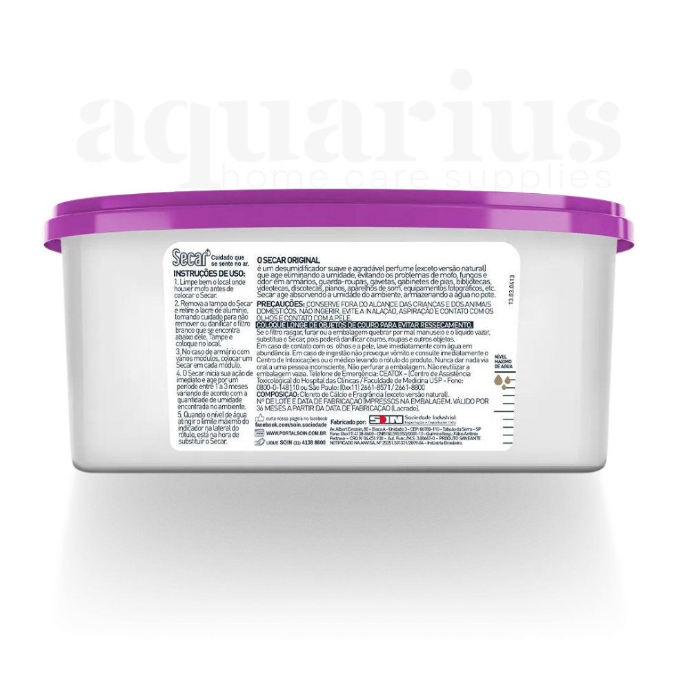 Bem-vindo à Aquarius Commerce! Anti Mofo Secar 80g Transforme seus ambientes com o Anti Mofo Secar 80g, desenvolvido para absorver a umidade e manter o ar fresco e saudável. Este desumidificador compacto é ideal para qualquer espaço da casa, como quartos, armários, banheiros e cozinhas, protegendo seus pertences do mofo e do bolor. Fragrâncias Disponíveis: Floral: Um aroma suave e relaxante que traz frescor e leveza ao ambiente. Kids: Especialmente pensado para quartos infantis, criando um ambiente limpo e saudável. Lavanda: Conhecida por suas propriedades calmantes, perfeita para relaxar em quartos e salas. Natural: Um perfume sutil e discreto que agrada a todos. Benefícios: Prevenção de Mofo e Bolor: Absorve o excesso de umidade, garantindo proteção e frescor. Ambiente Saudável: Melhora a qualidade do ar, promovendo bem-estar contínuo. Fácil de Usar: Compacto e eficiente, pode ser colocado em qualquer lugar. Não espere mais! Mantenha seus ambientes livres de umidade e frescos por mais tempo com o Anti Mofo Secar 80g. Aquarius Home & Care – Transformando seu lar em um refúgio saudável e aconchegante.