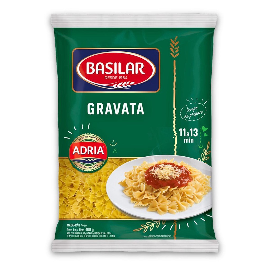 Kit com 4 pacotes de Macarrão Semolado Gravata Basilar Pacote 400g. Kit com 4 pacotes de Macarrão Semolado Gravata Basilar Pacote 400g.