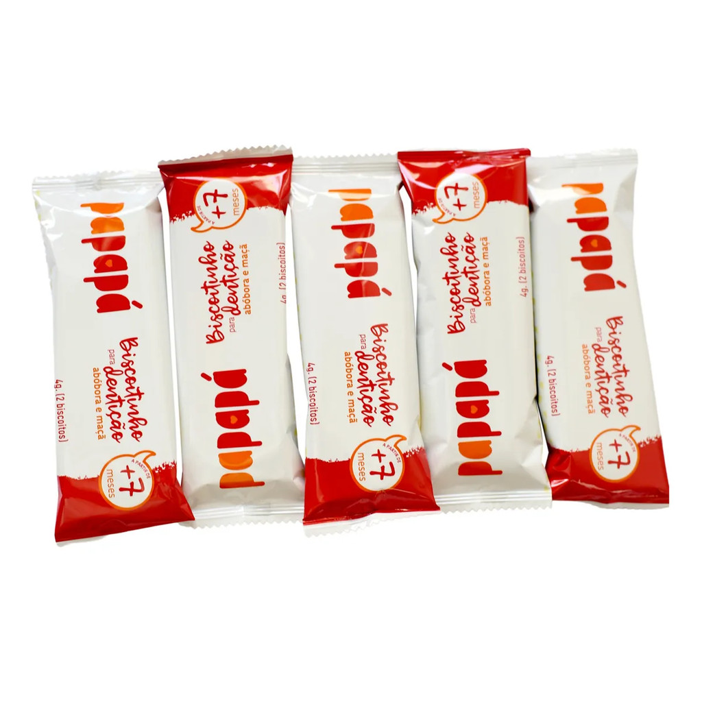 Kit com 04 unidades. Biscoitinho para Fase da Dentição Abóbora e Maçã.Os Biscoitinhos são elaborados com ingredientes naturais, sem glúten nem lactose. Possuem textura sólida por fora, facilitando o manuseio pelos bebês, mas se desfazem na boca ao contato com a saliva, adequados mesmo quando os dentes ainda estão em formação. Contribuem para aliviar o desconforto gengival durante o nascimento dos dentes, sendo uma opção saudável e nutritiva para o lanche do bebê.Cada caixa contém 9 embalagens tipo sachê, com 2 biscoitinhos cada.ARMAZENAMENTO E CONSUMODeve ser mantido em local sem exposição solar e umidade. Consumir em até 24h após aberto.RECOMENDAÇÃOIndicado para bebês a partir de 7 meses, sem restrições para crianças maiores.
