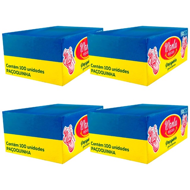 Paçoca de Amendoim Wanlu – Caixa com 100 Unidades A tradicional paçoquinha que todo mundo ama agora em embalagem econômica com 100 unidades! A Paçoca Wanlu é feita com amendoim selecionado, açúcar e um toque de sal, garantindo aquele sabor clássico, suave e que derrete na boca. Ideal para festas, lembrancinhas, revenda ou pra quem simplesmente não vive sem uma boa paçoca! KIT COM 4 CAIXAS - Total 400 paçocas ** Benefícios: - Feita com amendoim selecionado - Textura macia e que desmancha na boca - Caixa econômica com 100 unidades - Produto 100% brasileiro - Ideal para festas, brindes e consumo diário ** Ficha Técnica: - Produto: Paçoca de amendoim - Marca: Wanlu - Embalagem: Caixa com 100 unidades - Não contém glúten - Armazenamento: Conservar em local seco e arejado