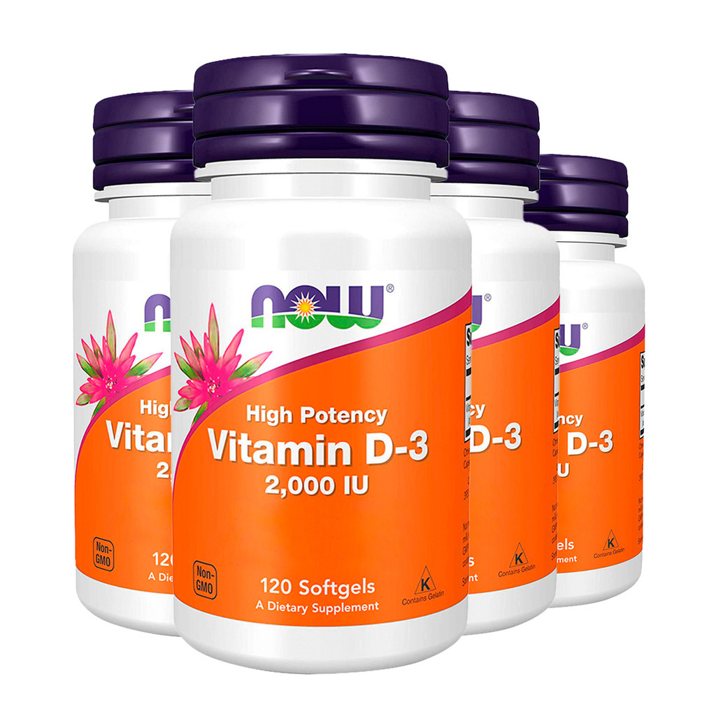 Kit 4x Vitamina D3 2000 IU Alta Potência Now Foods 120Softgls/Made in Usa