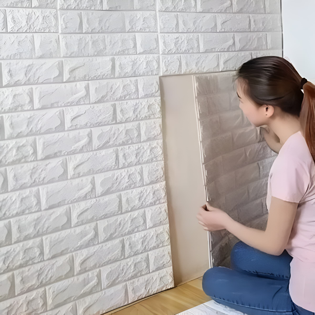 Kit 5/10/15/20 Placas 3D Tijolo Branco Adesivo Autocolante Decoração Quarto Sala Banheiro