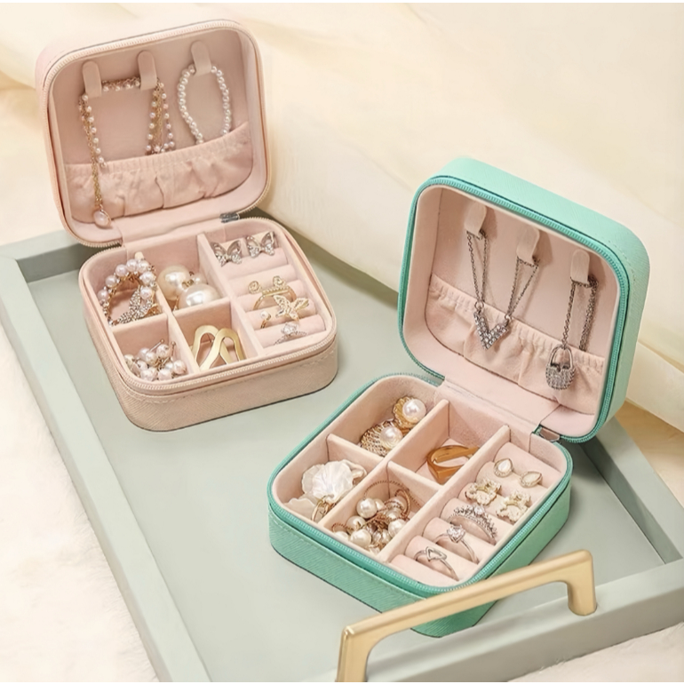 MINI PORTA JOIAS PORTÁTIL Este Porta Joias Portátil é perfeito para este propósito! Apresentamos um estojo de joias deslumbrante, com um design moderno e elegante, além de ser extremamente prático e compacto, ideal para se levar na bolsa ou mala sem ocupar muito espaço. Medidas: 10 x 10 x 5 cm cores: Rosa, Branco, Preto, Azul Tiffany