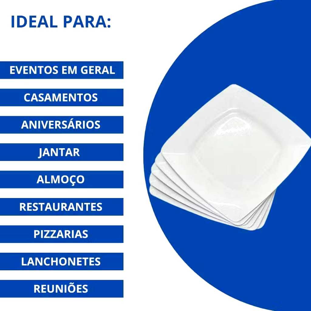 Apresento-lhe um toque de elegância que sua mesa merece! Descrição do Produto: Nossos Pratos quadrado raso em polipropileno, em cores Vibrantes são uma Ótima opção para servir as Crianças e aqueles que gostam de cores Elegantes, praticidade e Estilo na Cozinha e ou Evento. Com cores atemporais proporciona versatilidade, tornando-o ideal para diversas ocasiões; Bar, Lanchonete, festas, Aniversario, Hotéis, Escolas; Até mesmo na sua cozinha. Resistentes a quedas, pode ser utilizado em micro-ondas e máquina de lavar louça. Especificações Técnicas: Material: Plástico Polipropileno; Altura: 3 cm; Diâmetro: 23 cm; Espessura: 2,5 mm. Esses pratos são ótimos para adicionar um toque especial à sua mesa, seja em um jantar casual ou em uma ocasião mais formal. Você tem algum desses em mente ou está procurando algo específico? Adquira agora o Prato quadrado raso em polipropileno, com estética sofisticada e acabamento elegante, com isso, transforme cada refeição em uma celebração de bom gosto. Não perca a oportunidade de elevar sua experiência gastronômica e impressionar seus convidados. Estilo, praticidade e elegância reunidos em um único produto. Faça da sua mesa o centro das atenções! Agradecemos a visita em nossa Loja. Boas compras 🛍.