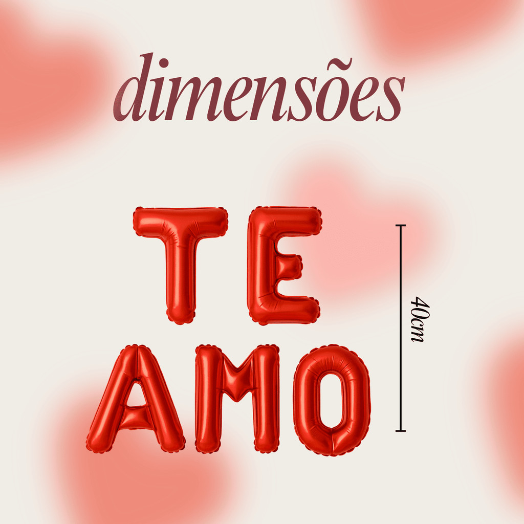 Kit 5/10/20/50 Balões Coração Metalizado 21cm TE AMO, Decoração Romântica Festa Dia das Mães, Namoro
