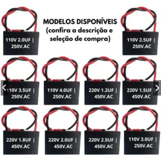 | Kit 10 UN Capacitor CBB61 Ventilador Partida Vários Modelo 250V 450... | R$ 24,50 | 65% | 4.8/5 | 10 |