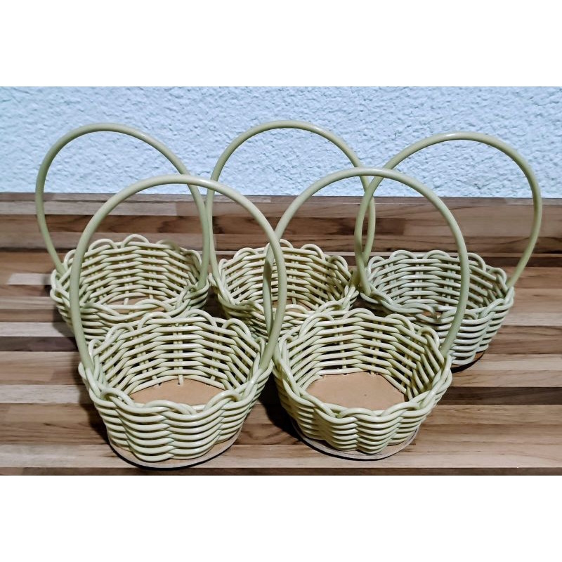 Kit 5/10 Cesta Fibra Sintética Redonda 11cm BEGE Decoração Natal Páscoa Lembrancinha