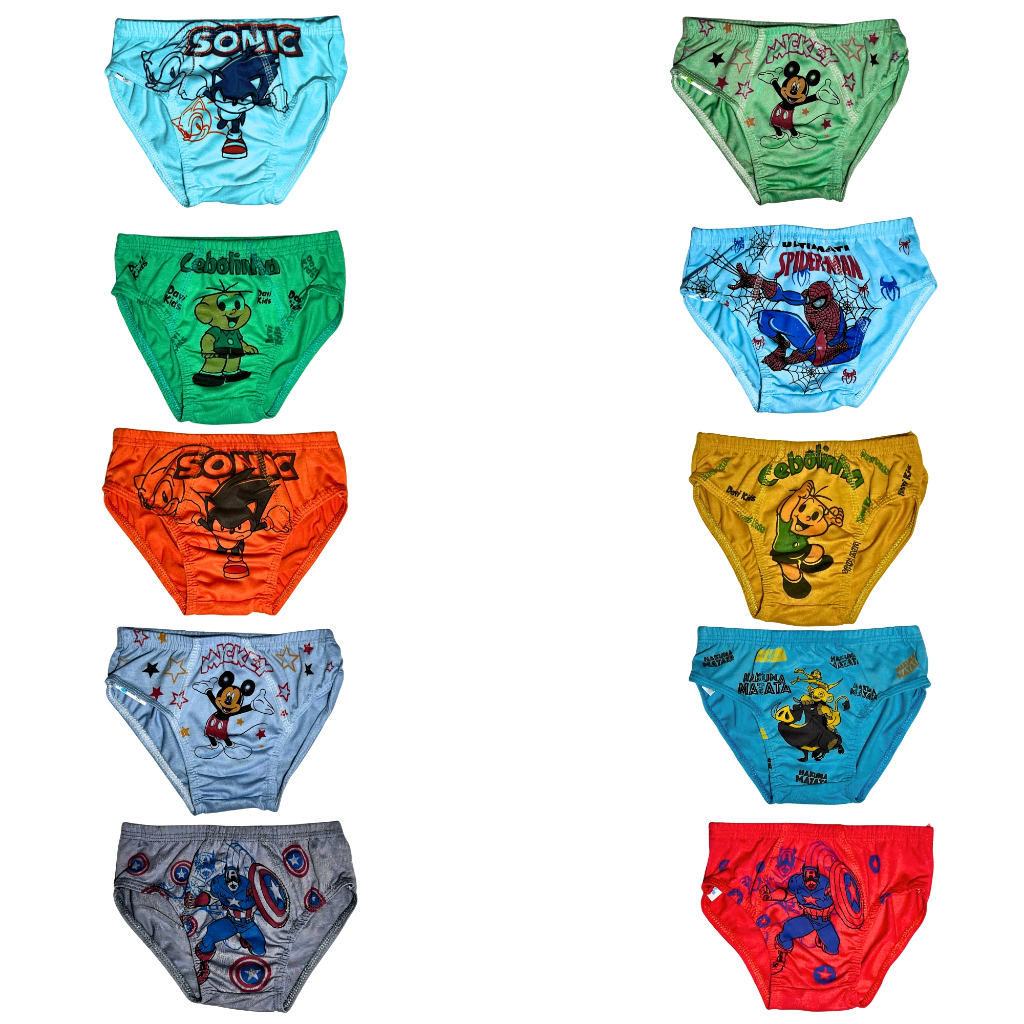 Kit 5-10 Cueca Infantil Menino Slip Premium Sublimada Forro 100% Algodão