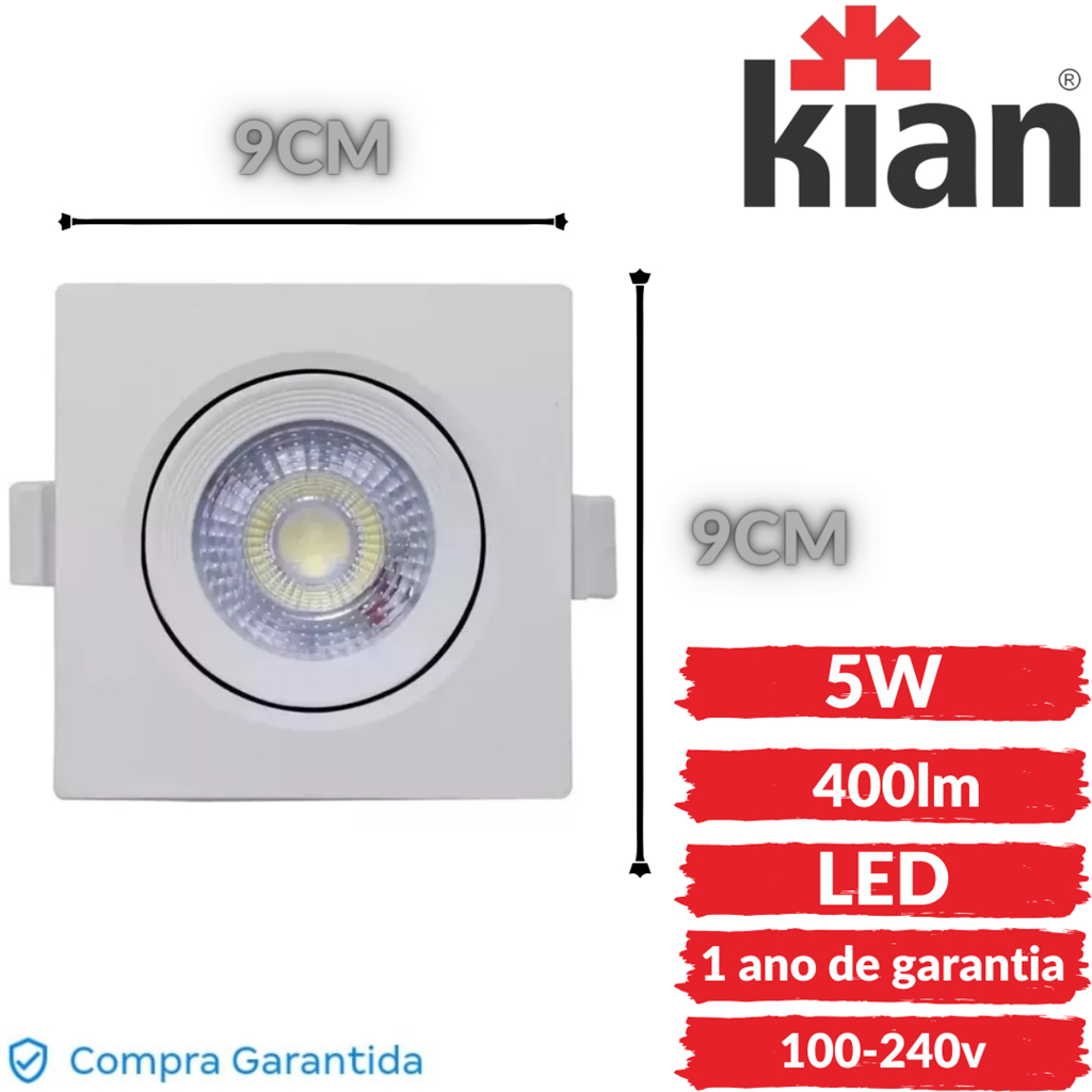 # ENTREGA RÁPIDA, ENVIO IMEDIATO! # GARANTIA DE 1 ANO; # MENOR CONSUMO DE ENERGIA (ATÉ 30%) # BIVOLT (100-240V) > Indicado para ambientes comerciais e residenciais, são perfeitos para iluminação de destaque, valorizando detalhes essenciais. Com design moderno e minimalista, o Led Spot possui facho de luz direcionável e podem ser instalados em tetos que permitam recorte para aplicação como: Madeira, forros de PVC, gesso, drywall entre outros. :::... ESPECIFICAÇÕES TÉCNICAS ...::: BRANCA FRIA 6500K: Tecnologia: Led Tensão Elétrica: 100-240V Fluxo luminoso: 400lm Potência: 5W Cor da luz: Branca Fria Uso indicado: Iluminação de efeito e aplicações decorativas Temperatura da cor: 6.500k Ângulo de abertura: 40o Frequência: 50/ BRANCA MORNA 3000K: Tecnologia: Led Tensão Elétrica: 100-240V Fluxo luminoso: 400lm Potência: 5W Cor da luz: Branca Morna Uso indicado: Iluminação de efeito e aplicações decorativas Temperatura da cor: 3.000k Ângulo de abertura: 40° Frequência: 50/60Hz Vida útil: 25.000h