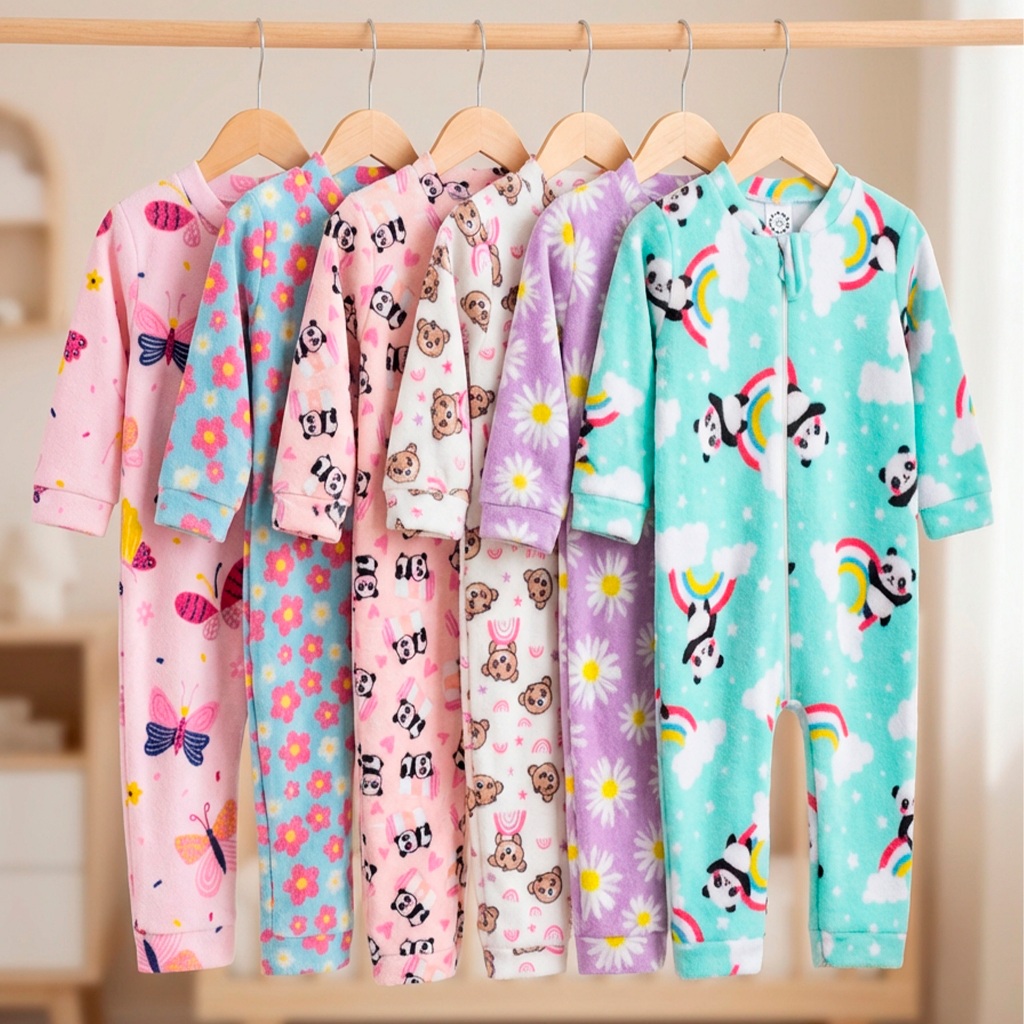 Kit com 1 ou 2 ou 5 Macacões Soft para Bebês Meninas – Conforto e Praticidade para os Dias Frios Este kit conta com as opções de 1, 2 ou 5 macacões confeccionados em tecido soft, perfeitos para manter seu bebê quentinho e confortável no dia a dia, durante o sono ou em passeios. São leves, macios e ideais para os dias mais frios, com abertura em zíper que facilita muito na hora de vestir e trocar. Detalhes do Produto: Composição: 100% Poliéster (Soft) – Tecido leve, macio e quentinho Abertura frontal com zíper – Prático para vestir e trocar a fralda Punhos ajustados – Melhor caimento e conforto no corpo Uso versátil – Ideal para dormir, brincar em casa ou passear no inverno Sortido e funcional – Envio de modelos variados conforme disponibilidade de estoque Benefícios: Super confortável e quentinho Não amassa e seca rápido Macacões fáceis de vestir com zíper frontal Tamanho M – Comprimento: 54 | Busto: 26 | Cintura: 27 | Manga: 24 Tamanho G – Comprimento: 55 | Busto: 27 | Cintura: 28 | Manga: 25 Tamanho 1 – Comprimento: 58 | Busto: 28 | Cintura: 30 | Manga: 27 Tamanho 2 – Comprimento: 60 | Busto: 30 | Cintura: 31 | Manga: 29 Tamanho 3 – Comprimento: 63 | Busto: 31 | Cintura: 33 | Manga: 31 📌 Observação: As medidas podem variar em até 2 cm devido ao processo de confecção.