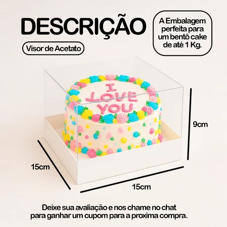 KIT 5~20 Caixas Para Bento Cake Gourmet 15x15x9cm Confeitaria Acetato