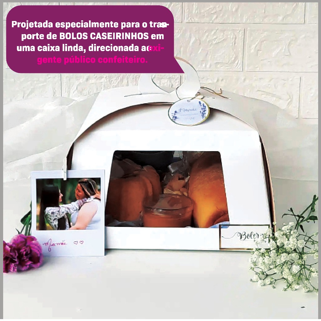 Um linda caixa com alça coração ideal para o transporte de bolos com até 1,5Kg. Projetamos nossas caixas com o fundo e laterais em uma única peça, dando assim mais segurança no transporte. Nossas caixas tem abertura lateral para facilitar a colocação e retirada dos bolos. ESPECIFICAÇÕES: - Caixa de Altíssima Qualidade - Suporta até 1,5 Kg - Atende Cake Board de Até 26cm de diâmetro - Abertura Lateral para Facilitar a Colocação e Retirada do Bolo - Fabricada em Papel Duplex 350 g/m2 - Visor na Tampa RECOMENDAÇÕES: - Caixas Ideal para o Transporte de Bolo, Tortas e Doces - Vai na Geladeira DIMENSÕES DA CAIXA MONTADA: 25x25cm de Base (Atende Cake Board de Até 25cm de diâmetro) 14cm de Altura AS CAIXAS SÃO ENTREGUES DESMONTADAS PARA BARATEAR O FRETE. DESPACHAMOS PARA TODO O BRASIL. POR QUE COMPRAR COM A CAIXABOX? - 20 Anos de Mercado; - Fabricação Própria; - Embalagens para o Segmento Alimentício;