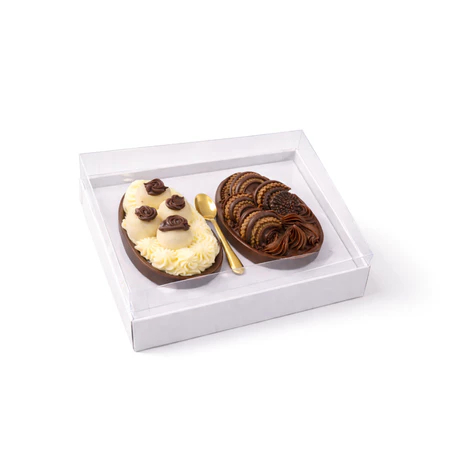 KIT 5~20 Caixas para Ovo de Colher Páscoa Gourmet Duo M 2 Cavidades Tampa Acetato 100/150g