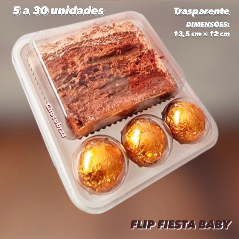 KIT EMBALAGEM FLIP FIESTA BABY PARA 3 DOCES E BOLO °°° COMPOSIÇÃO DO PRODUTO °°° 5 A 30 – EMBALAGEM FLIP FIESTA BABY TRANSPARENTE CRISTAL DESCRIÇÃO: ATENDENDO A PEDIDOS CRIAMOS A VERSÃO MINI DA FLIP FIESTA. PRÁTICA E VERSÁTIL, MUITO UTILIZADA PARA KIT FESTA. DIMENSÕES: 13,5 CM × 12 CM CAVIDADE PARA O BOLO: 11CM X 8,5 CM ESCOLHA A QUANTIDADE NA VARIAÇÃO DO ANÚNCIO COM DESCONTO PROGRESSIVO DE ACORDO COM A QUANTIDADE LEVE MAIS PAGUE MENOS COR EXTERNA: TRANSPARENTE COR INTERNA: TRANSPARENTE MATERIAL UTENSÍLIOS: PLÁSTICO PRONTA ENTREGA!!!