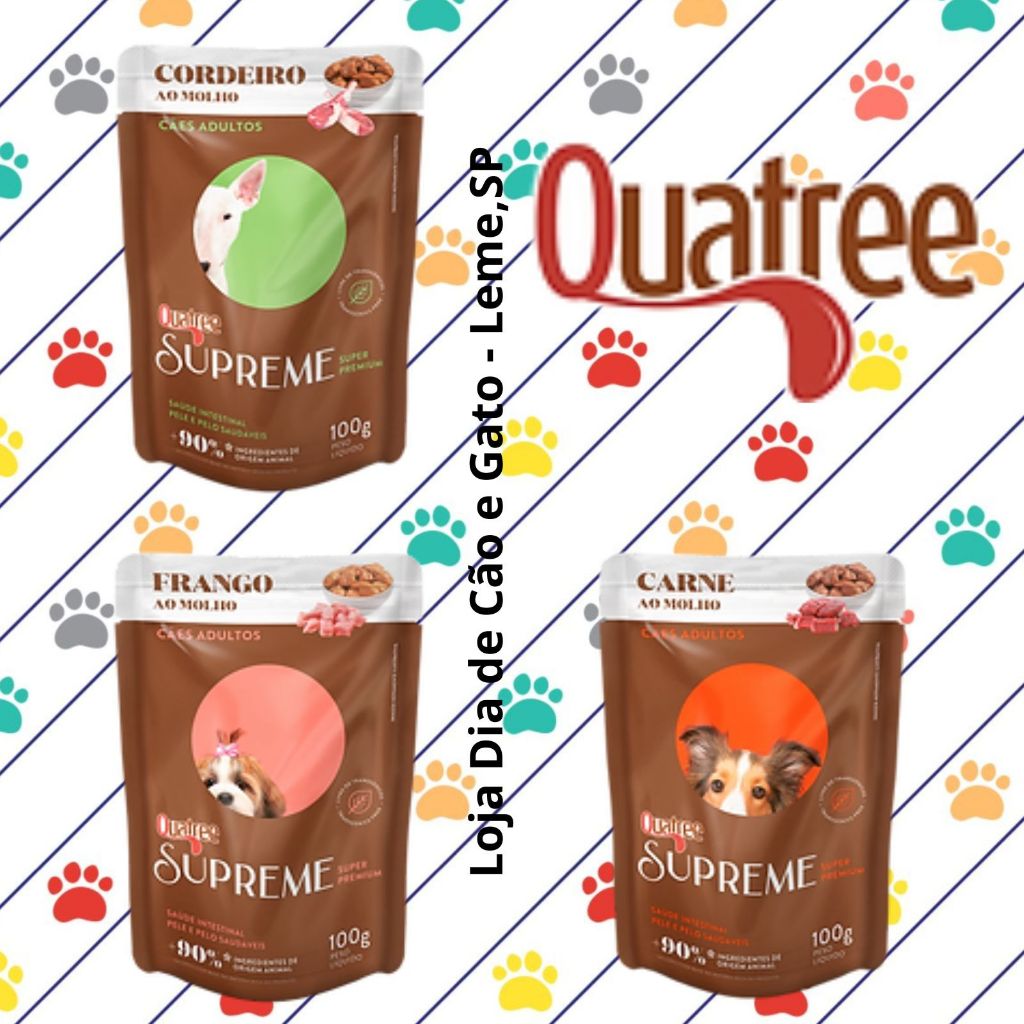 | Kit 5 a 25 Sachês Quatree 100g - Alimento Úmido para Cachorros este produto | R$ 22,00 | — | 5.0/5 | 2 |