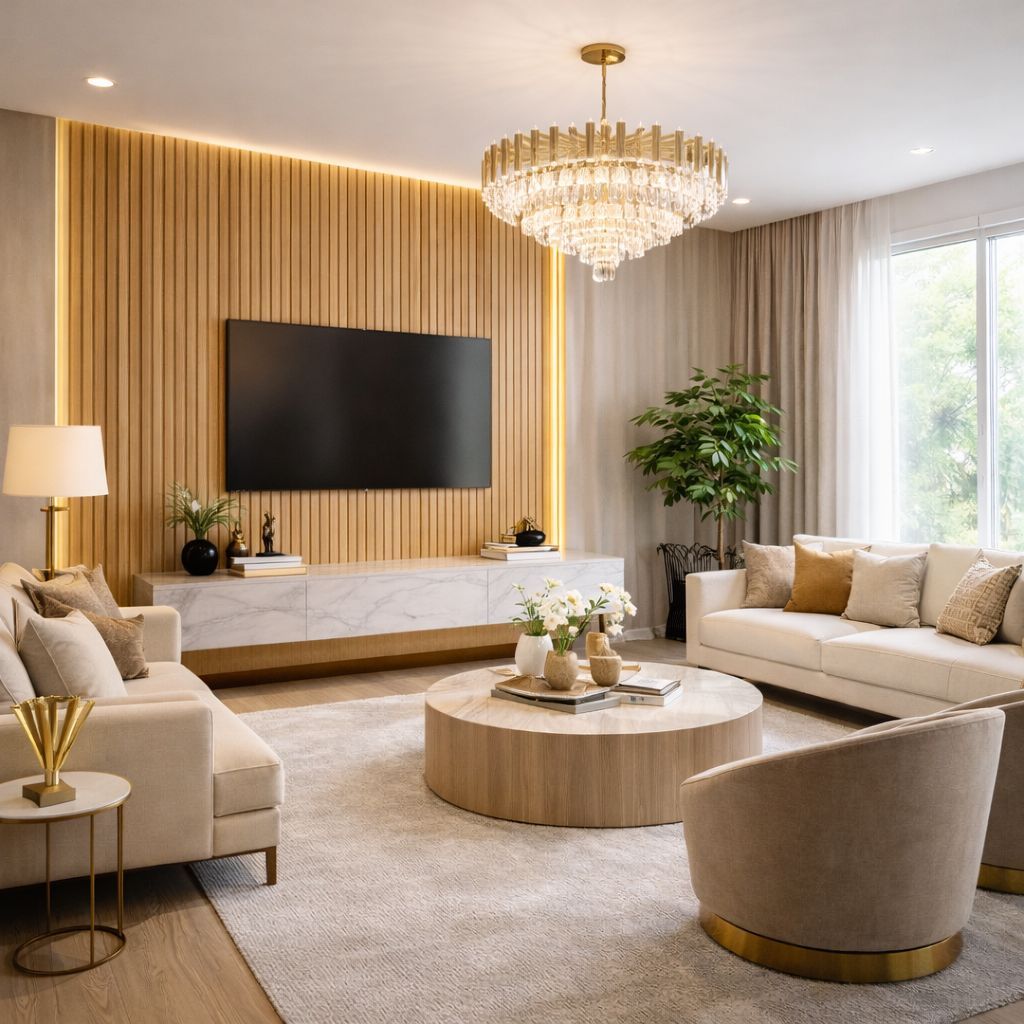 Kit 5 À 50 Placas Ripada Premium Autocolante Madeira MDF 45x10 Decorativo Quarto Sala Tv Escritório