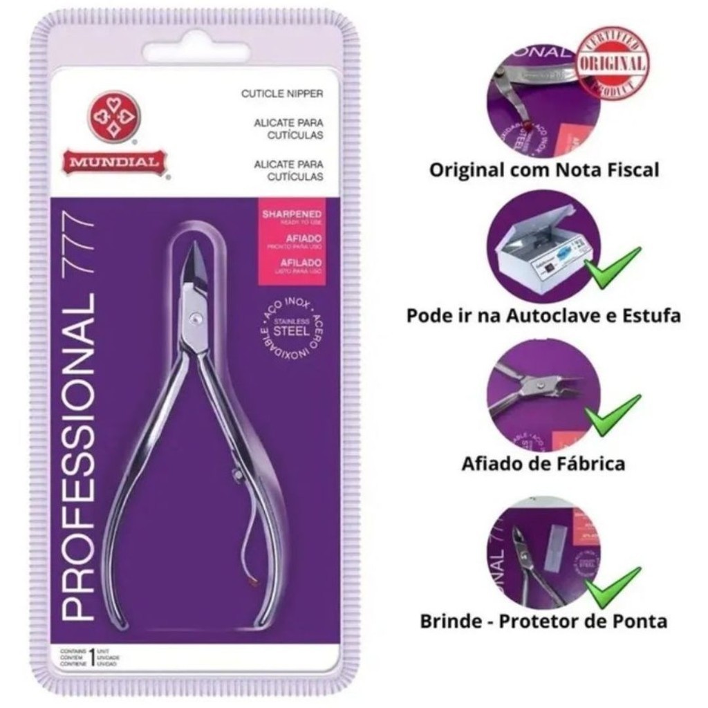 Kit 5 Alicates Mundial 777 Professional Premium – Alta Precisão para Manicure Profissional