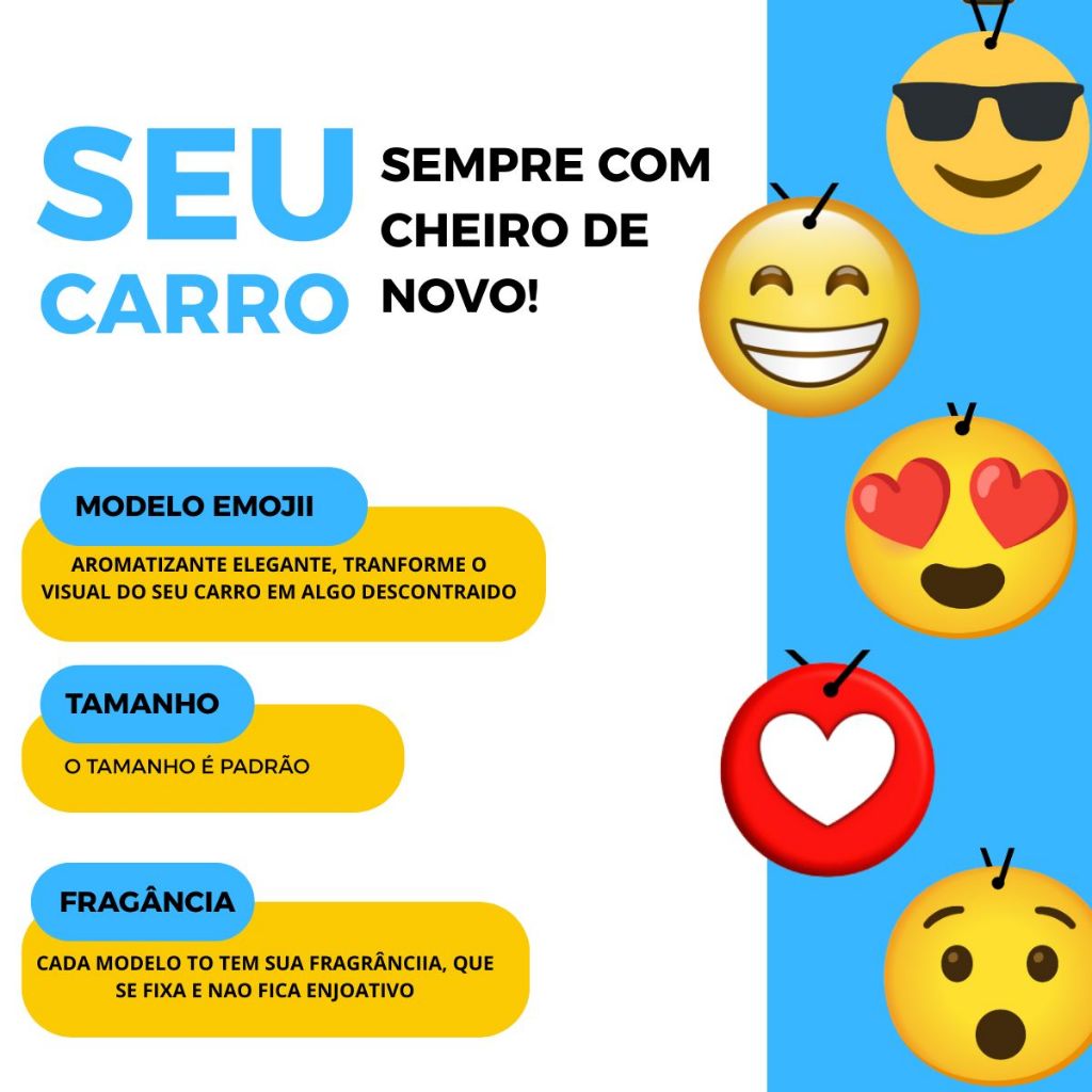 🥰 Aromatizante de Carro Emoji com Cordão – Divertido e Perfumado! Transforme o ambiente com um toque de diversão e um cheirinho irresistível! Nosso aromatizante pendente Emoji com olhos de coração é perfeito para deixar seu carro, guarda-roupa ou qualquer cantinho com um aroma agradável e um visual super estiloso. ✅ Características: • Design exclusivo com estampa de emoji apaixonado 🥰 • Formato redondo em material absorvente perfumado • Fácil de pendurar – acompanha cordão com fecho prático • Ideal para uso em carros, closets, gavetas ou ambientes pequenos • Cheirinho suave e duradouro (varia conforme lote) 📏 Tamanho: • Diâmetro aproximado: 7 cm 💡 Dica de uso: Pendure no retrovisor do carro ou dentro do guarda-roupa. Evite contato direto com superfícies para não manchar.