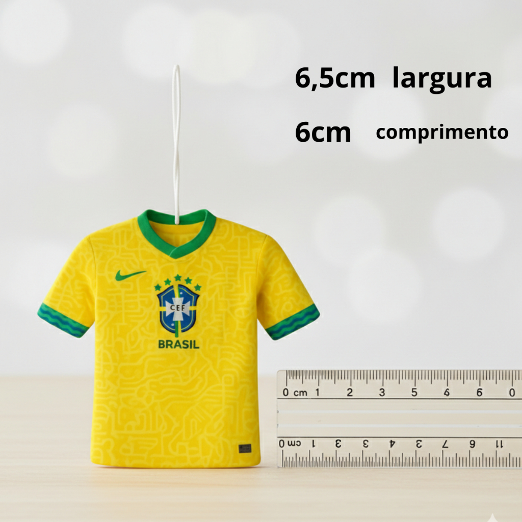 Leve a paixão pela Amarelinha para dentro do seu carro! Este aromatizante exclusivo em formato de mini camisa não apenas deixa um perfume agradável no interior do veículo, mas também serve como um item de decoração indispensável para todo torcedor. --Design Icônico: Réplica detalhada da camisa da Seleção, perfeita para pendurar no retrovisor. --Fragrância de Longa Duração: Tecnologia de absorção que libera o perfume de forma gradual, mantendo o carro com aspecto de limpo e fresco por muito mais tempo. --Material de Qualidade: Acabamento impecável com cores vibrantes que não desbotam facilmente com o sol. Instalação Simples: Já acompanha o cordão de fixação, pronto para uso imediato. Ficha Técnica: Modelo: Camisa Seleção Brasileira (Amarela/Verde). Uso: Automotivo, guarda-roupas ou escritórios. Fixação: Cordão elástico para retrovisor. Dimensões: Aproximadamente 6,5cm x 6cm (tamanho ideal para não atrapalhar a visão).
