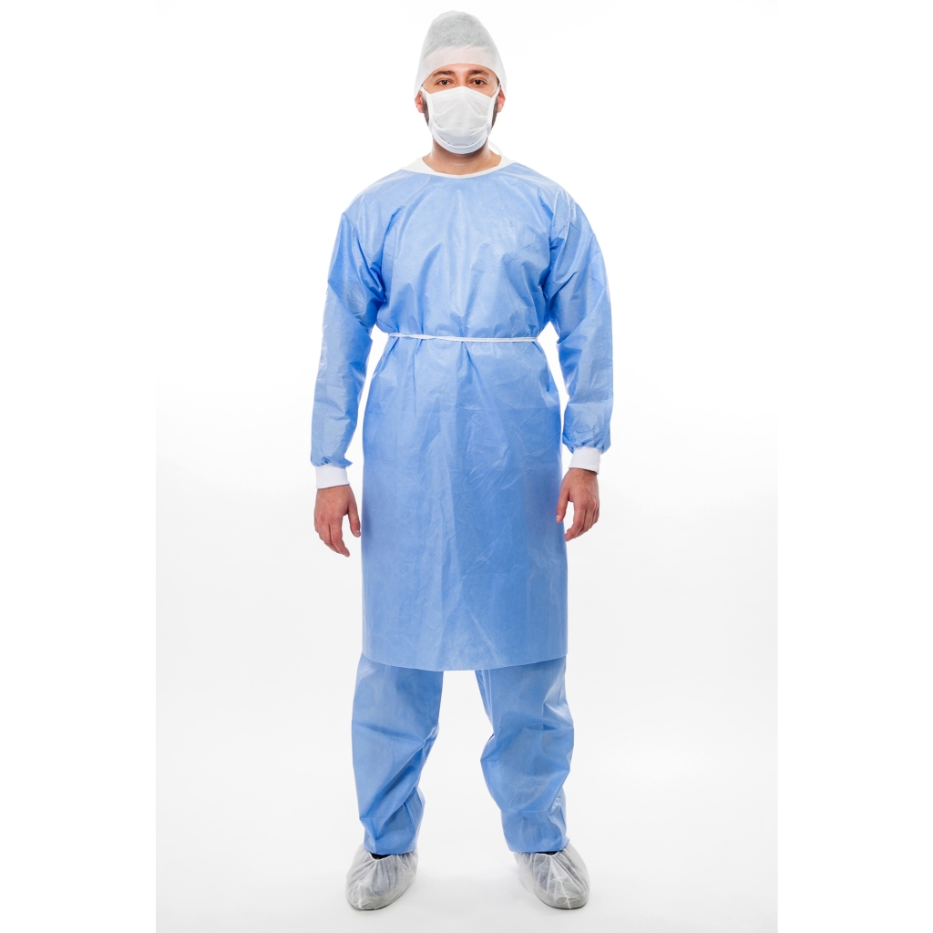 Kit 5 Aventais Descartáveis Estéril SMS Manga Longa 40g Azul Hospitalar