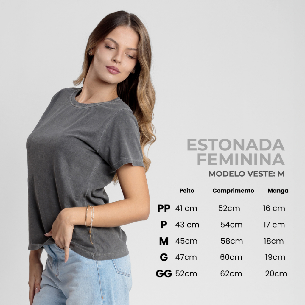 Camiseta Feminina Estonada The Right Clothing – Ficha Técnica do Produto Especificações Técnicas: - Composição: 100% Algodão Premium - Gramatura: 187g/m² (malha encorpada e resistente) - Tipo de Malha: 30.1 penteada – Antitorção (não deforma com lavagens) - Lavagem: Estonada – efeito visual moderno e desgastado - Acabamento da Gola: Ribana 2x1 desagulhada (gola canelada de alta qualidade) - Costura: Dupla reforçada (alta resistência nas costuras) - Reforço: Ombro a ombro (aumenta a durabilidade da peça) - Processo: Pré-encolhida (não encolhe após lavagem) - Aroma: Levemente aromatizada para melhor experiência no recebimento Tabela de Medidas Nas Fotos do Anuncio Diferenciais do Produto: - Alta resistência estrutural (costura dupla e reforço ombro a ombro) - Malha premium com toque macio e caimento estruturado - Gola de alta durabilidade, que mantém o formato - Lavagem estonada que proporciona visual exclusivo em cada peça - Peça já estabilizada (não sofre encolhimento significativo) FAQ – Camiseta Masculina Estonada Adulto 1. A camiseta é estonada de verdade? Sim! Ela passa por um processo especial de lavagem que garante o efeito estonado autêntico, com aparência vintage e toque macio. 2. Qual é a modelagem da camiseta? A modelagem é babylook, com caimento confortável — tende ser mais justa ao corpo. Veste bem no corpo mantendo o visual moderno. 3. Ela encolhe depois da lavagem? Pode ocorrer um encolhimento natural de 2% a 3%, comum em peças 100% algodão, mas não interfere no caimento. 4. O tecido é realmente confortável? Sim! Produzida em malha 100% algodão penteado, garante conforto, respirabilidade e durabilidade. 5. A cor estonada desbota com o tempo? A tonalidade pode suavizar um pouco com as lavagens — o que é natural do estilo estonado — mas o processo utilizado garante estabilidade de cor e longa durabilidade. 6. Ela marca o corpo? Não! A modelagem regular proporciona um caimento equilibrado, confortável e que não marca. 7. A gola é resistente? Sim! Utilizamos rib de qualidade, mantendo a gola firme mesmo após várias lavagens. 8. Vem com etiqueta interna tradicional? Não! Usamos etiqueta interna impressa, garantindo muito mais conforto e evitando incômodos. 9. Posso comprar no atacado? Sim! Trabalhamos também com vendas no atacado fora da plataforma. Chame no chat que enviamos catálogo, valores e condições especiais. 10. Tem troca se não servir? Na Shopee ainda não é possível fazer troca, mas você pode solicitar a devolução e fazer a recompra do tamanho desejado. No Mercado Livre, a troca segue as regras da plataforma. Caso alguma cor ou modelo não esteja disponível no momento do envio, será enviado um produto semelhante, mantendo o mesmo padrão de qualidade. Em caso de dúvidas, nossa equipe está à disposição no chat.
