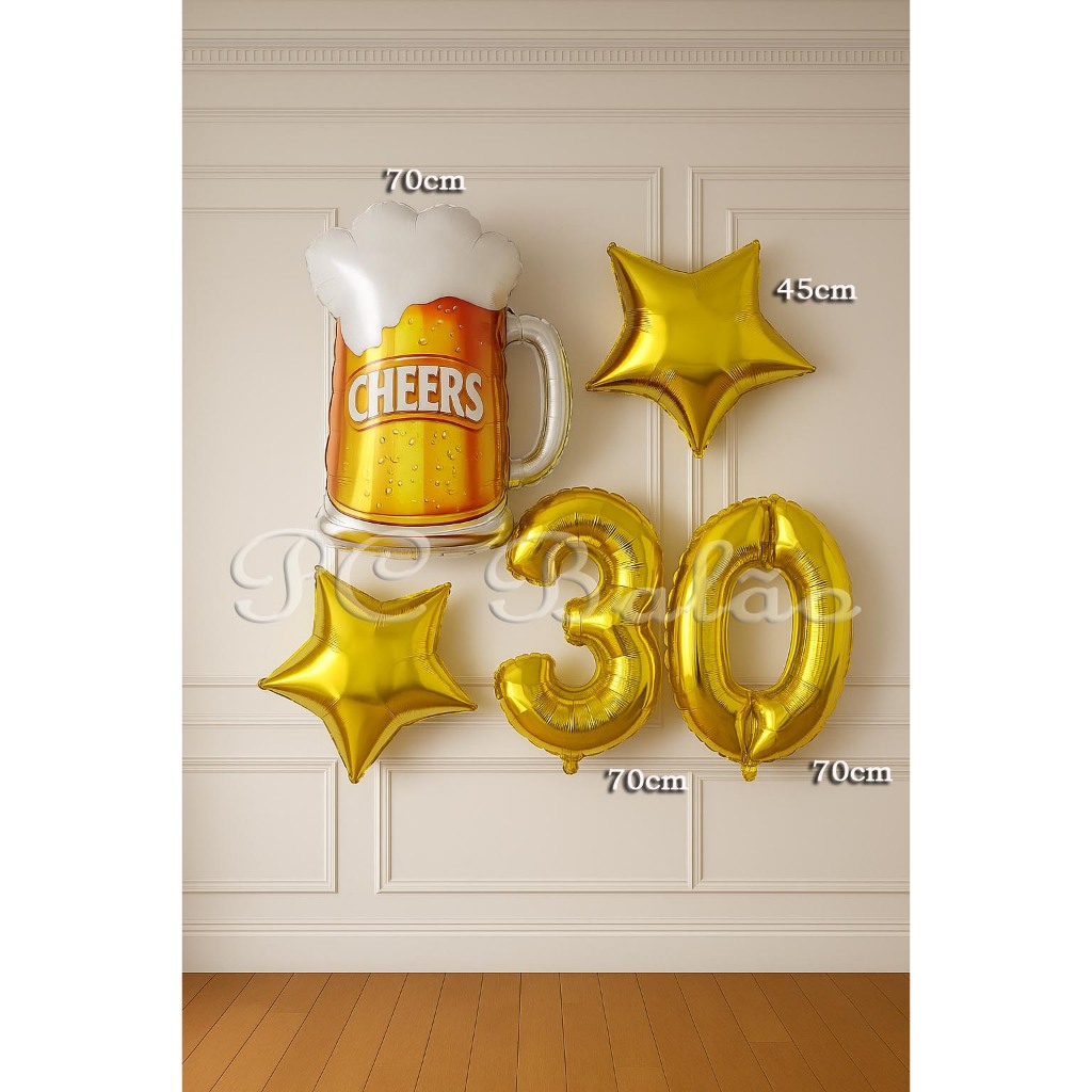 Kit 5 Balão Metalizado 1 Caneca De Cerveja 70cm + 2 Estrela DOURADO45cm + 2 Número 70cm DOURADO