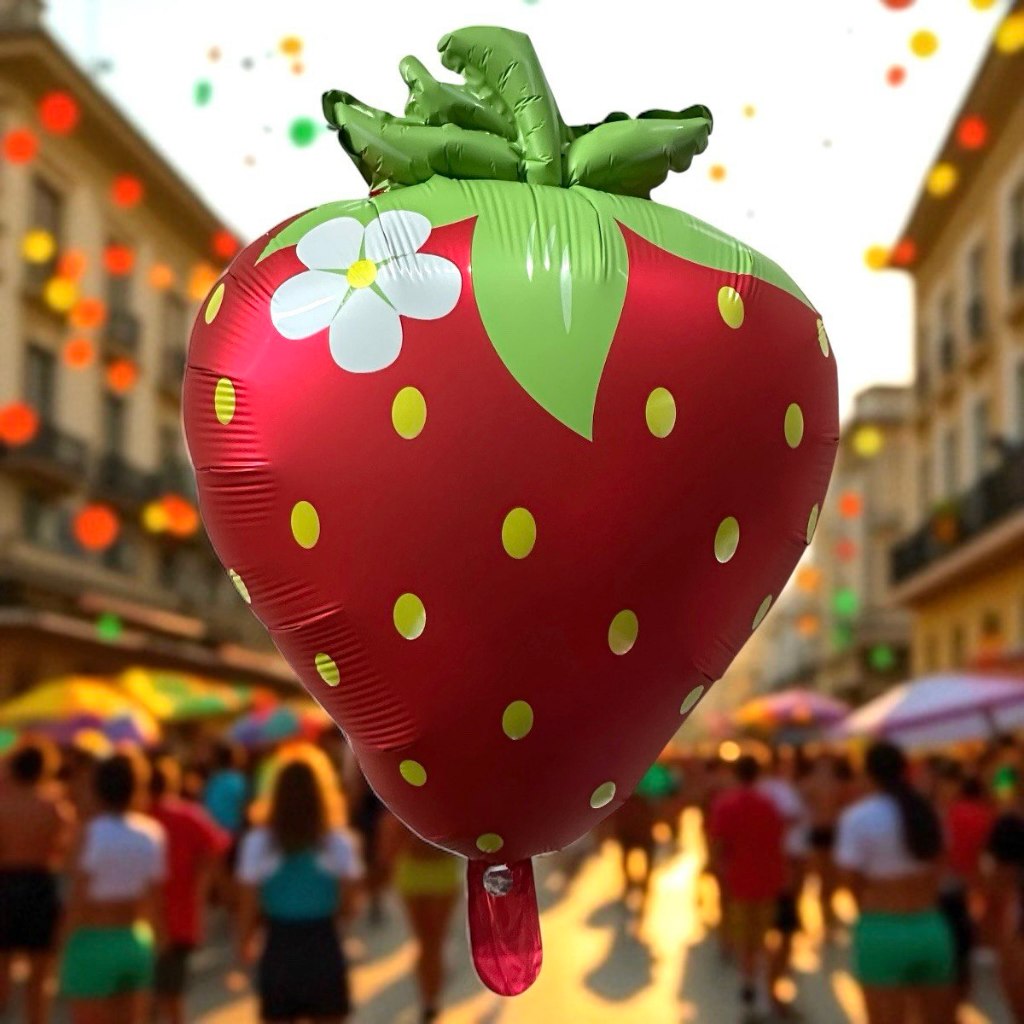 Kit 5 Balão Metalizado Fruta Amor Morango 65cm Decoração Festa Enfeite