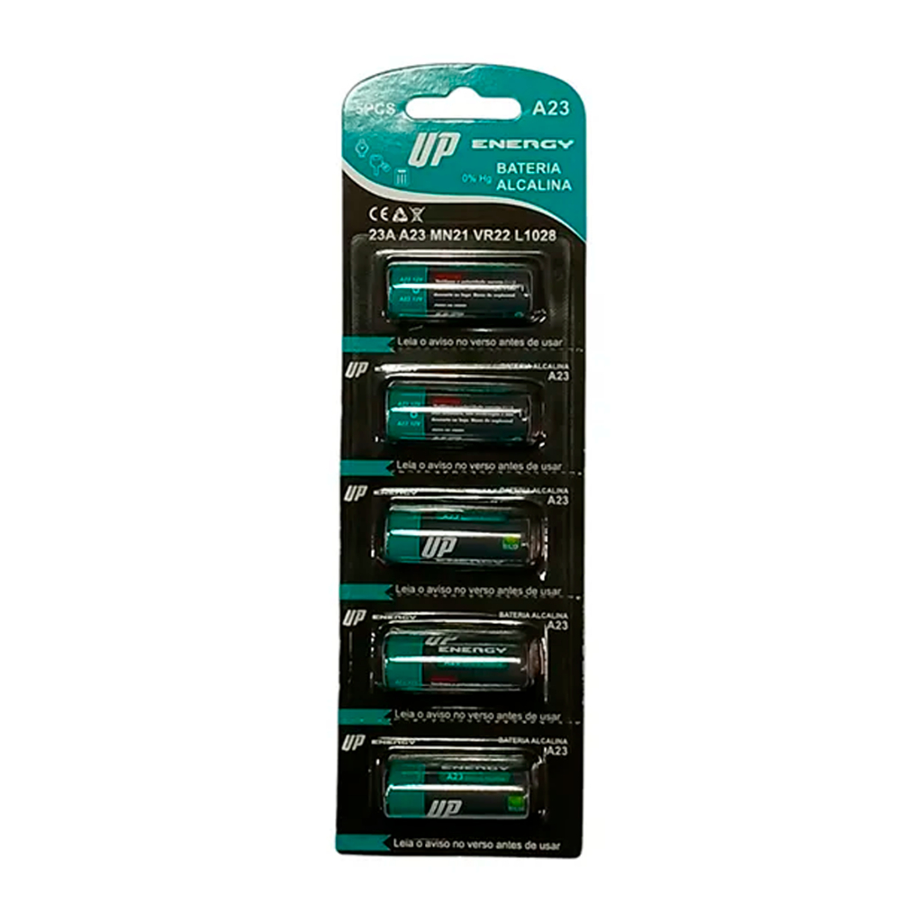 Kit 5 Bateria Mini Alcalina A23 12V Up Energy Compatível com Controle de Portão 3c Nice Peccinin