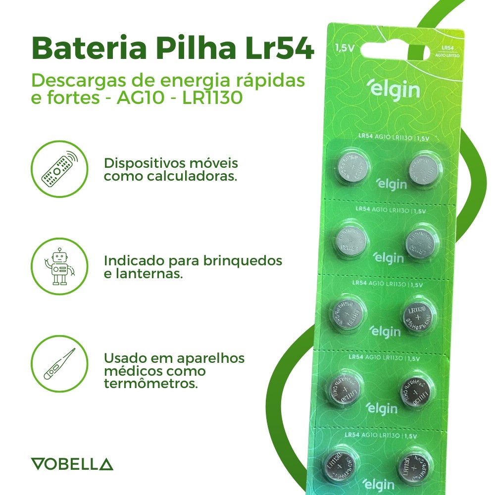 Oii, é um prazer ter você aqui! Você já passou pela frustração de ficar sem bateria justamente quando mais precisava delas, como em um momento importante ou durante uma emergência? A Bateria Alcalina LR54 1,5v Sensor Alarme Câmera Elgin é a solução para garantir que você tenha pilhas sempre à mão quando precisar. Com o tubo de pilhas, você terá a energia necessária para seus dispositivos em todos os momentos. O que é: - Marca: Elgin. - Contém: Blister com 10 Baterias Alcalina. - Modelo: LR54 AG10 LR1130. - Voltagem: 1,5 Volts - NÃO RECARREGÁVEL. O que tem: - Dimensões: 3,6 x 7,7 mm. - 0 % de Metais Pesados. - Alta Durabilidade. - Economia e Qualidade. Onde usar: - Brinquedos. - Termômetros digitais. - Equipamentos eletrônicos. - Calculadoras. - Lanternas. Como usar: - Abra o compartimento de pilhas do seu aparelho. - Remova as pilhas antigas, se houver. - Insira as Pilhas Alcalinas Lr54, garantindo que os polos positivo e negativo estejam na posição correta. - Feche o compartimento das pilhas. - Seu aparelho está pronto para uso novamente! Com o kit 10 pilhas Alcalina Lr54, você pode ter a tranquilidade de saber que terá energia disponível sempre que precisar. Surgiu alguma dúvida? Entre em contato com a gente! Boas Compras :)