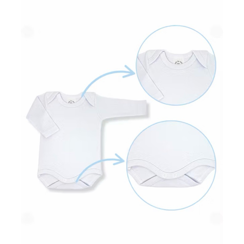 Kit 5 Body de Bebê Manga Longa Branco Suedine 100% Algodão Roupa Infantil Enxoval Maternidade Sublimação Personalizado