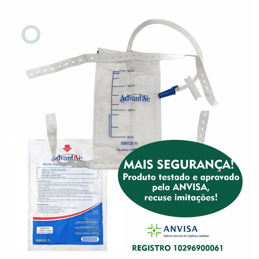 COLETOR de URINA de PERNA com Extensão 750ml - 5 unidades - COLETOR de URINA de PERNA - Com extensão; - Fabricado em PVC atóxico pneumático; - Sistema fechado - Conector de entrada e saída da drenagem - Tiras elásticas PARA fixação na PERNA (com regulagem); - Torneira de escoamento de fluídos na parte inferior - Tela protetora de pele anti-alergênica; - Embalado em papel grau ciríurgico;_ - Esterelizado a gás óxido de etileno ESPECIFICAÇÕES TÉCNICAS - Capacidade 750ML; QUEM SOMOS: A OzonioArt é uma empresa dedicada a proporcionar produtos de saúde e bem-estar da mais alta qualidade. Com um compromisso inabalável com o bem-estar dos seus clientes, a OzonioArt oferece uma ampla gama de produtos projetados para promover uma vida saudável e equilibrada. Desde dispositivos de terapia de ozônio até suplementos nutricionais de última geração, cada item é cuidadosamente selecionado e fabricado com os mais altos padrões. Ao escolher a OzonioArt, você está optando pela excelência em saúde e bem-estar, garantindo uma jornada de bem-estar enriquecedora e revitalizante. Espero sua compra.