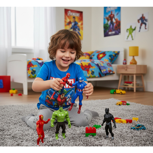 E aí, amante do universo Marvel! Já imaginou ter um pedacinho dos seus super-heróis favoritos sempre ao seu lado? Com a opção colecionável, você pode ter os minis bonecos Marvel, Hulk, Homem de Ferro e Homem Aranha. Os minis bonecos são ideais para quem quer ter um super-herói, enfeitando sua escrivaninha ou cantinho especial da casa. Eles também são perfeitos para estimular a imaginação e a criatividade das crianças. Os pequenos vão se encantar ao recriar as emocionantes missões das histórias inventar suas próprias versões emocionantes combatendo o mal. Membros articulados deixando a brincadeira mais divertida, podendo manusear e ajustar como quiser. Inclusos: Boneco Homem Aranha 9.5cm Boneco Homem De Ferro 9.5cm Boneco Hulk 10.5cm Boneco Pantera Negra 9.5cm Boneco Capitão América 9.5cm Indicado Para Crianças Acima De 3 Anos