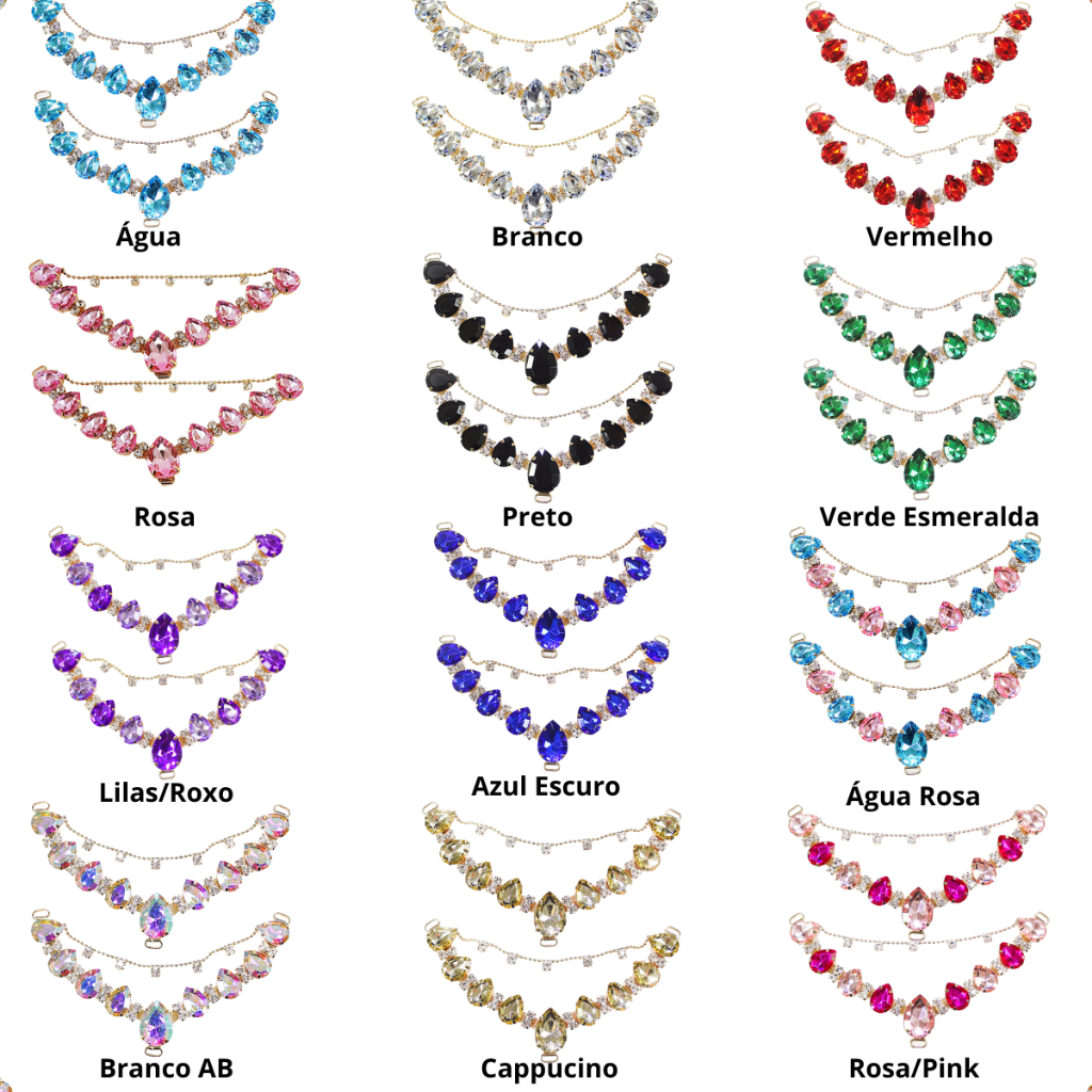 TEMOS TODAS AS CORES, APÓS A COMPRA NOS MANDAR MENSAGEM COM AS CORES DESEJADAS OU SERÁ ENVIADO SORTIDO O kit 3 cabedal em V vendido pelo full será sortido! Cabedal no formato V e CORRENTE com caixaria dourada com ótimo banho e pedrarias de strass e chatons, muito fácil de ser aplicado. Não precisa cortar as correias dos chinelos! É só costurar e fazer o acabamento com muito carinho. ATENÇÃO!!! VERIFIQUE A NOSSA LOJA AQUI PARA APROVEITAR MAIS PRODUTOS E ECONOMIZAR NO FRETE. OU ACESSE NOSSO SITE PARA MAIS VARIEDADES Observações: - Imagens meramente ilustrativas. As cores podem sofrer pequenas variações de acordo com as configurações de seu monitor.