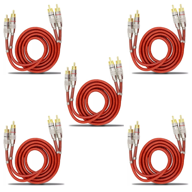 Kit 5 Cabos Rca 1 Metro Blindado Svart Vermelho Cabo 1m Conector Banhado A Ouro
