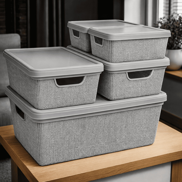 Kit 5 Caixa Organizadora Cesto com tampa grande em plástico em Promoção 1,8 L 5 L 15 L