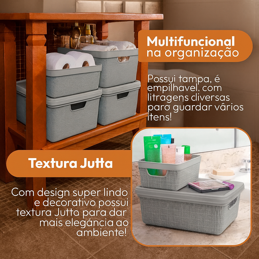 Kit 5 Caixas Organizadora Com Tampa Cestos Multiuso Gaveta Armário Lavanderia Jaguar Utilidades