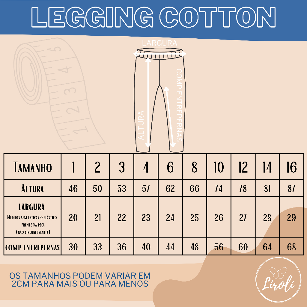 Obrigada por escolher a Lirolí Kids :) Legging linda, de Cotton, super confortável para o dia a dia. Não fica transparente! Peças femininas. Disponíveis nos tamanhos 1 ao 16. Cores disponíveis: Rosa, Cinza Claro, Cinza Escuro, Preto, Azul Marinho, Verde, Vermelho, Azul Royal, Vermelho e Pink. TEMOS TODOS OS PRODUTOS A PRONTA ENTREGA E O ENVIO É IMEDIATO! ENVIAMOS PARA TODO O BRASIL. SERÁ ENVIADO NO TAMANHO SELECIONADO. ________________________________________ ESSE KIT CONTÉM: 5 calças Legging em Cotton Cores disponíveis: Vermelho, Mescla Escuro, Azul Marinho, Preto, Azul Royal, Vermelho, Verde, Rosa, Pink e Mescla Claro. Composição: 96% algodão, 4% elastano A cor mescla (cinza claro e escuro) tem em sua composição 50% algodão, 46% poliéster, 4% elastano Veja a TABELA DE MEDIDAS nas fotos do anúncio.