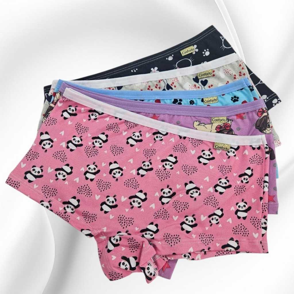 KIT 5 Calcinha ADULTO Estilo Cueca Boxer Feminina Shortinho Suede Conforto Estampada