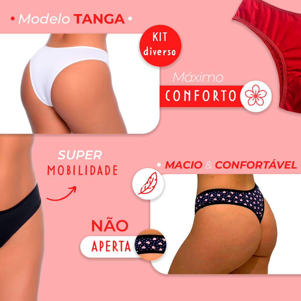 Kit 5 Calcinha Conforto Tanga Lisas e Estampadas lingerie de Microfibra.