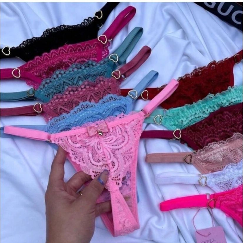 Kit 5 calcinha coração em renda lateral regulavel forro 100% algodão 5 cores variadas tamanhos P, M,G,GG