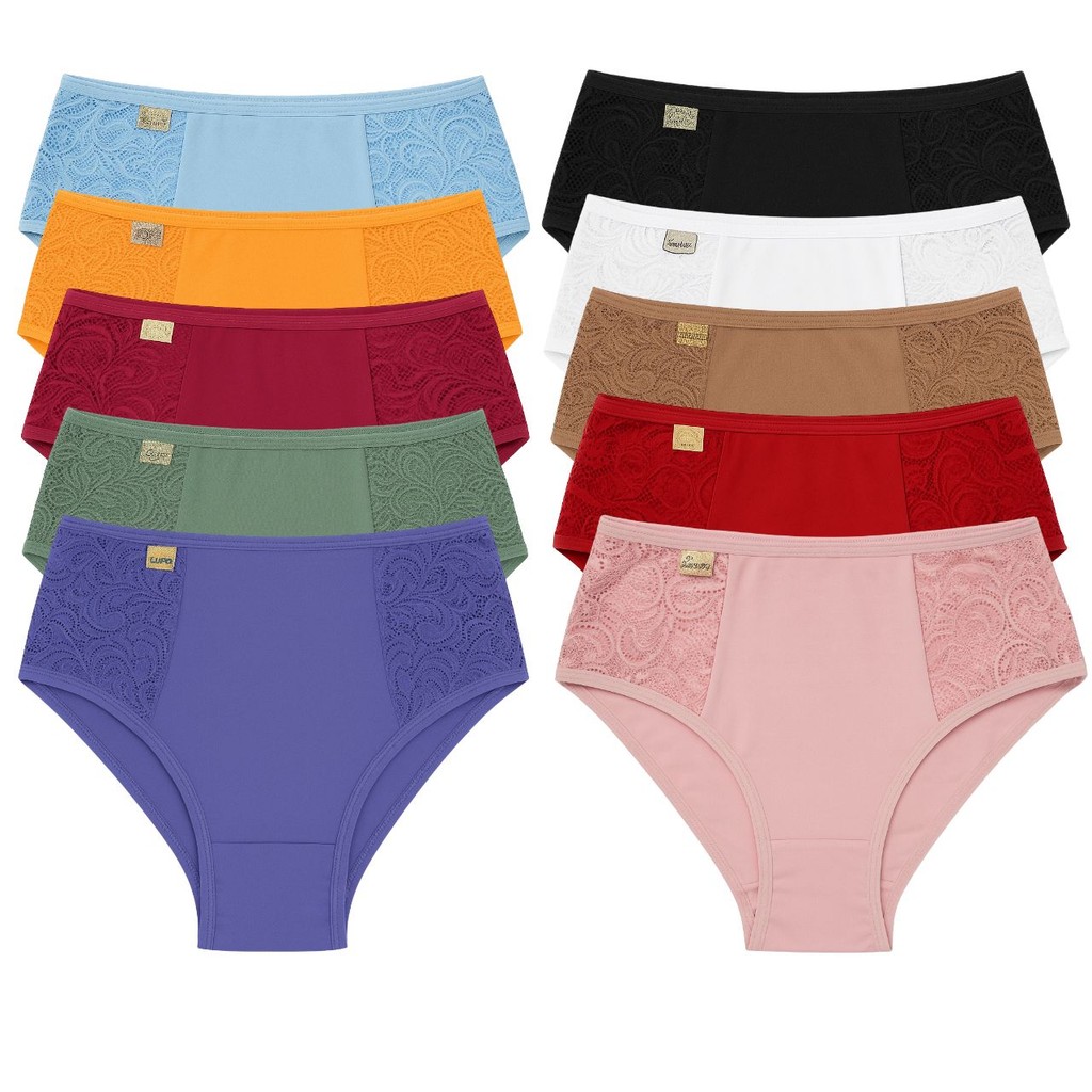 MELHOR PREÇO !! CONFORTO E QUALIDADE !! DIRETO DE FÁBRICA !! Contém: 5 Peças. Calcinha Vera – Cós Alto com Renda Forrada e Forro 100% Algodão. A calcinha Vera foi desenvolvida para oferecer conforto, saúde íntima e elegância no dia a dia. Com cós alto e laterais em renda forrada, garante um visual delicado sem abrir mão da discrição. Seu forro 100% algodão proporciona mais segurança e cuidado com a região íntima. Modelo no estilo tanga/tangão conforto, é ideal para quem busca bem-estar prolongado, especialmente no uso diário e para senhoras que priorizam maciez e comodidade. TAMANHOS: M: 38/40 G: 42/44 GG: 46/48 ---> Diferenciais: . Cós alto que modela suavemente. . Laterais em renda forrada, delicada e confortável. . Forro 100% algodão para manutenção da saúde íntima. . Estilo tanga/tangão conforto, perfeito para o dia a dia. . Toque macio e ótimo caimento. Uma peça versátil, discreta e extremamente confortável – perfeita para quem valoriza beleza, praticidade e bem-estar. OBS: As cores enviamos de forma sortida de acordo com a disponibilidade em nosso estoque, em kits maiores pode haver repetições. tendo alguma preferência de cores, só escrever por favor nas observações do seu pedido na hora que for realizar o pagamento. Qualquer dúvida, estamos disponíveis no chat para melhor ajudar. Será um prazer te atender =)