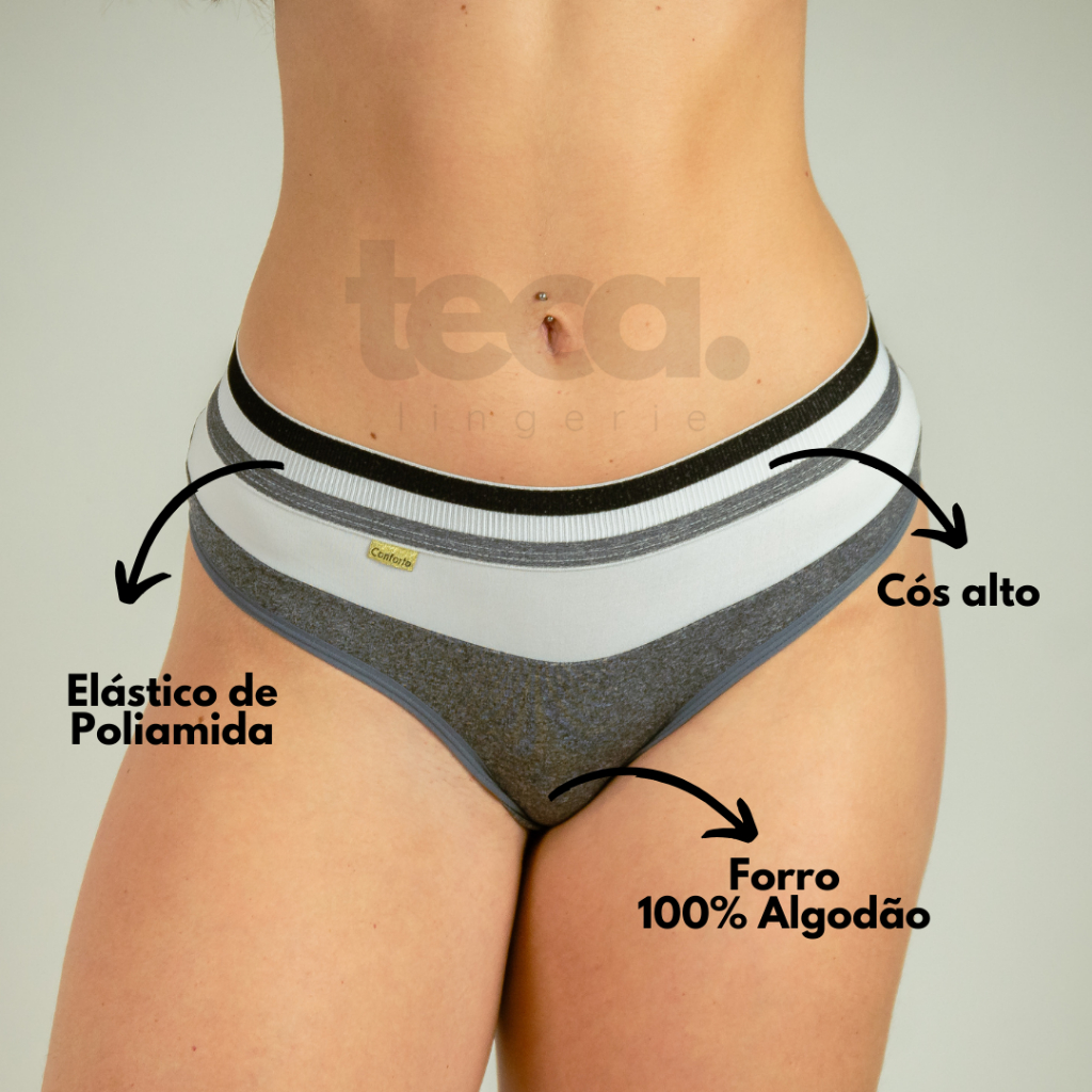 Kit 5 Calcinha Cós Alto Microfibra Forro 100% Algodão Feminino Arco Íris